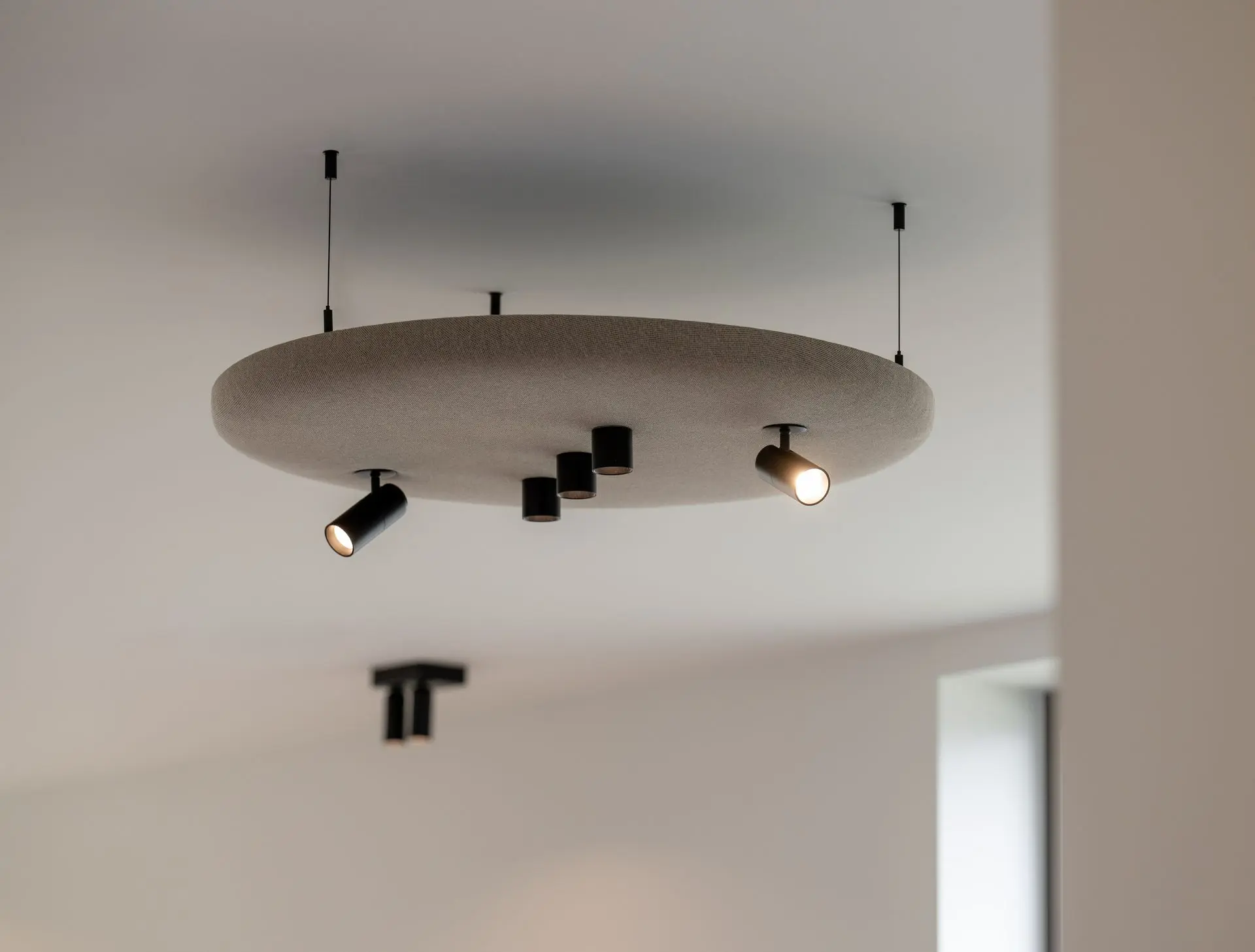 De Muto is uitgerust met cirkelvormige, richtbare en gependeld spots die je de vrijheid geven om specifieke gebieden of objecten in de spotlight te zetten. Of het nu gaat om het accentueren van een kunstwerk, het verlichten van een werkruimte of het creëren van een sfeervolle ambiance, de veelzijdigheid van deze spots zorgen ervoor dat je altijd de gewenste sfeer kunt bereiken.